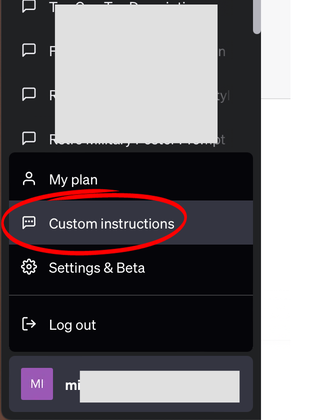When logged into your ChatGPT account on a desktop/Laptop, click in your name in the lower left of the screen, and a sub-menu pops up, where you’ll see ‘Custom instructions’ as an option.
